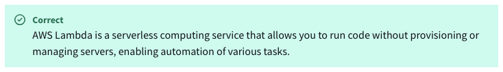- AWS Lambda allows you to run code automatically in response to events — no servers to manage.
