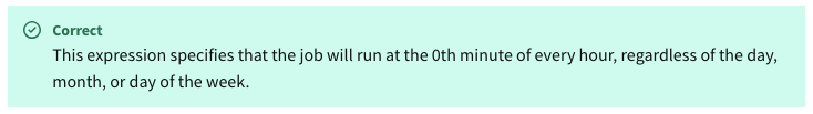 3. Which of the following cron expressions will run a job every hour, regardless of the day, month, or day of the week?