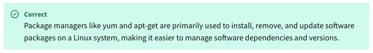 - They are used to install, remove, and update software packages on a Linux system. ✅