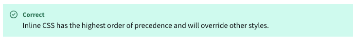 6. You’ve applied an external CSS file and used inline style for a few elements to style a webpage. However, one element does not reflect the external style rules. What could have caused this issue on the webpage?