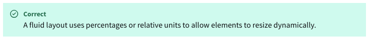 - A fluid layout adjusts element widths proportionally based on the screen size. ✅