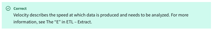 - It defines the speed at which data is generated, collected, and processed. ✅