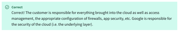 2. Which of the following statements is TRUE regarding Shared Security Responsibility Model in Google Cloud?