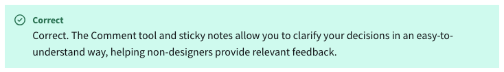 Using the Adobe Acrobat Comment tool and sticky notes allows you to provide clear, simple explanations alongside the design. This helps ensure that team members who are unfamiliar with design terminology can easily understand your choices and provide relevant, meaningful feedback without confusion.