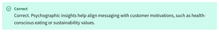 - Psychographic insights, as they reveal customer lifestyle choices and values ✅