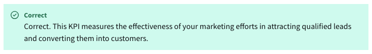2. You’re a marketing analyst preparing a report for your executive team. The team wants to understand how efficiently your campaigns are turning leads into paying customers. Which KPI should you focus on?