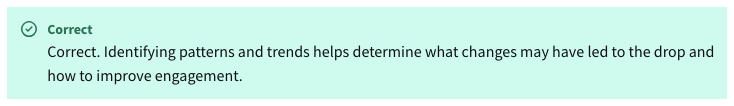 6. You’re a social media strategist for a nonprofit, and engagement on your posts has dropped significantly. What’s the best way to interpret this data before making changes?