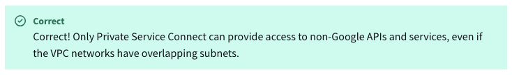 1. You want to provide access to services that you created in a VPC network. The services should be available to other specified VPC networks through endpoints that have internal IP addresses. Some of these VPC networks have subnets with overlapping internal IP addresses. Which product can you use?
