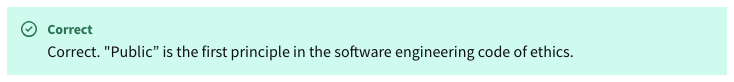 One of the core principles in the software engineering code of ethics is “Public”, meaning to act in the public interest and ensure software is safe and effective.
