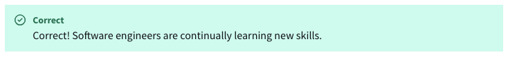 19. True of false. Learning on the job and developing new skills is an important part of a software engineer’s role.