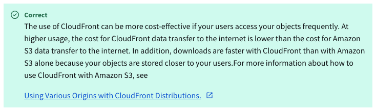 - Create an Amazon CloudFront distribution with Amazon S3 as the origin. ✅