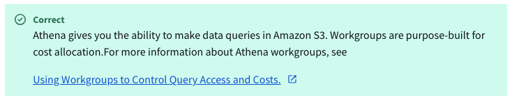 - Amazon Athena with workgroups set up for each department. Each department will query through the workgroup tagged for their department in the billing console. ✅